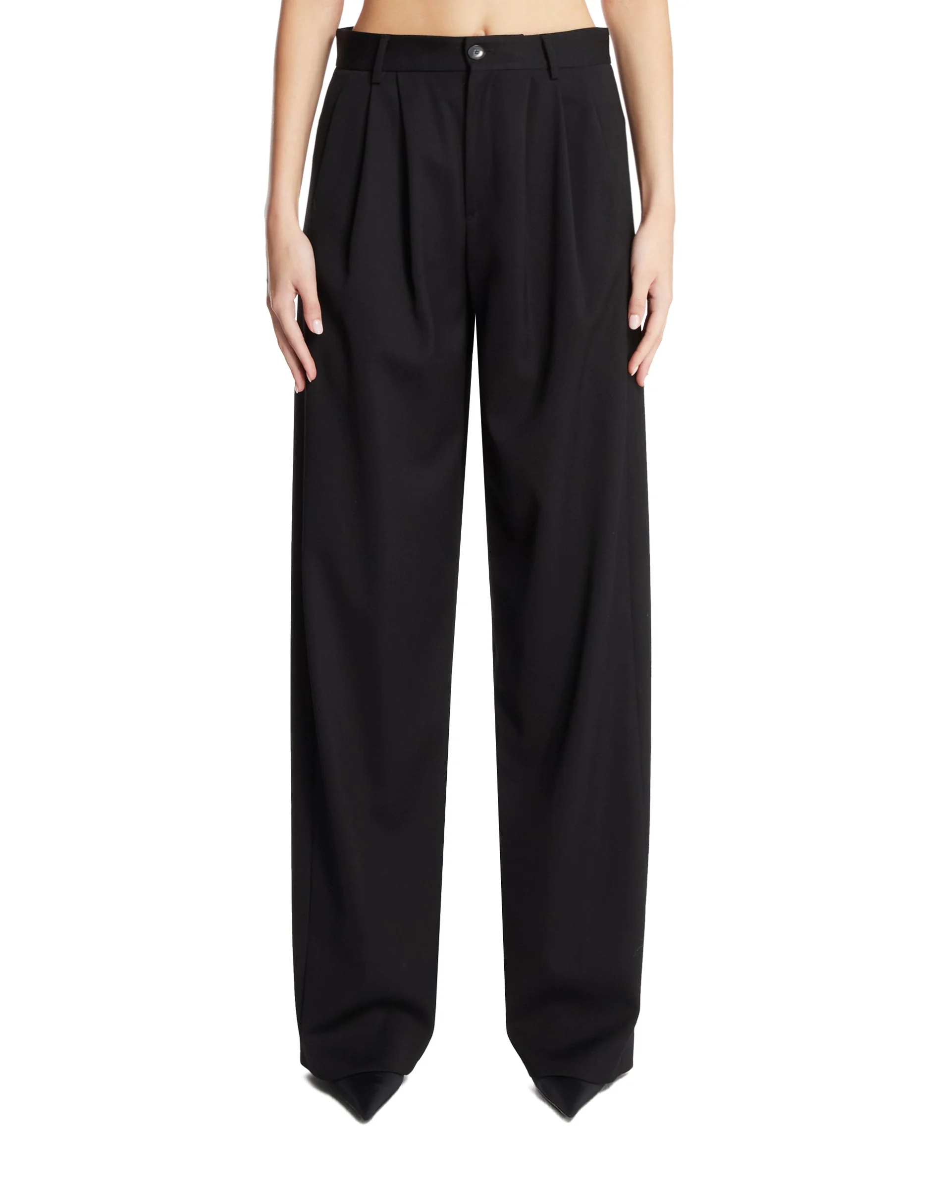 Darkpark Black Sheila Tailored Trousers. Black wool-blend and technical fabric, hidden front closure with visible button, belt loops, pleats, side pockets, two welt pockets at the back, straight hem. Perla is 176 cm and she is wearing size 38. DETAILS Model: WTR75FAW450099 Composition: 54% Polyester, 44% Wool, 2% Elastane Made in: ITALY Season: FW25-26