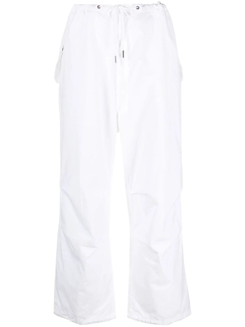 Blair cotton track pants Highlights - White - Cotton - Drawstring waist - Two side flap pockets - Rear flap pocket - Drop crotch - Wide leg - Drawstring cuffs - Silver-tone hardware Made in Italy Composition Cotton 100% SIZE & FIT Model measurements Height 5 ft 10 in(1.78 m) Bust/Chest 31.49 in(80 cm) Hips 35.03 in(89 cm) Waist 23.62 in(60 cm) FittingInformation Designed for a tapered fit, these trousers allow for a close fit at the waist and a loose unrestricted fit over the leg with a closer fit towards the ankle Adjust this piece’s waistband to your preference using the drawstring Made from a midweight non-stretch fabric, this piece offers minimal elasticity when worn This piece fits true to size – take your usual size Measurement FRONT RISE 14.48 in(36.8 cm) INSIDE LEG 23.5 in(59.7 cm) BACK RISE 17.51 in(44.5 cm) HIPS 35 in(88.9 cm) Hem Width 19.01 in(48.3 cm) WAIST 32 in(81.3 cm)