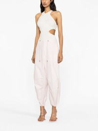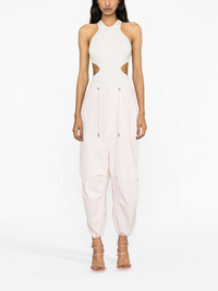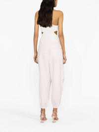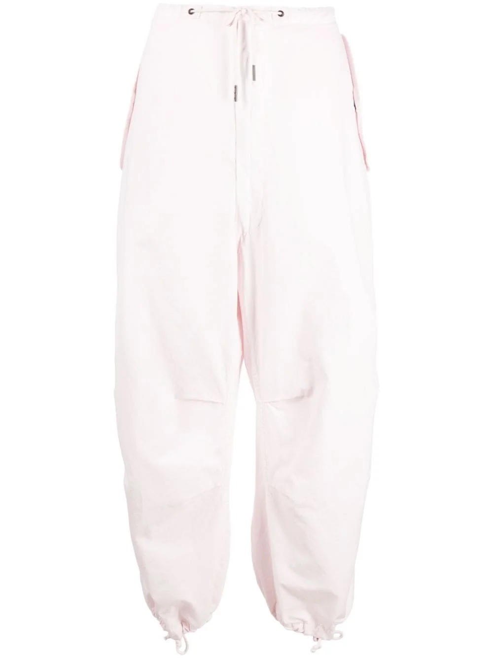 Blair drop-crotch cargo trousers Dark Park's specialises in crafting trousers, like this cotton pair, that mix the unconventional with the practical. Topped with a drawstring waistband, the loose silhouette is enhanced with a drop rise and tempered at the ankles with adjustable toggled cuffs. Highlights - Light pink - Cotton - Drawstring fastening waist - Rear flap pocket - Two side slash pockets - Drawstring cuffs - Elasticated toggle detailing Made in Italy Composition Cotton 100% SIZE & FIT Model measurements Height 5 ft 10 in(1.78 m) Bust/Chest 31.49 in(80 cm) Hips 35.03 in(89 cm) Waist 23.62 in(60 cm) FittingInformation Designed for a tapered fit, these trousers allow for a close fit at the waist and a loose unrestricted fit over the leg with a closer fit towards the ankle The internal drawstring at the hem allows for fitted preferences at the ankle Made from a midweight non-stretch fabric This piece fits true to size – take your usual size Washing instructions Machine Wash