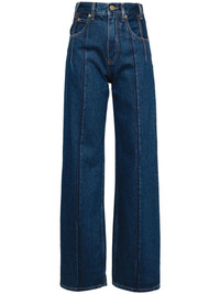 creased straight jeans Highlights - Navy blue - Cotton - Denim - Contrast stitching - Pressed crease - Logo patch to the rear - Belt loops - Concealed fly and button fastening - Two side slit pockets - Two rear patch pockets - Straight leg Made in Italy Composition Outer: Cotton 100% Lining: Polyester 65%, Cotton 35% SIZE & FIT Model measurements Height 5 ft 10 in(1.77 m) Bust/Chest 31.49 in(80 cm) Hips 35.43 in(90 cm) Waist 25.19 in(64 cm) FittingInformation Designed for a tapered fit, these jeans allow a close fit at the waist and a loose unrestricted fit over the leg with a closer fit towards the ankle Sturdy and hard-wearing, this denim piece offers no stretch This piece fits true to size – take your usual size Washing instructions Machine Wash
