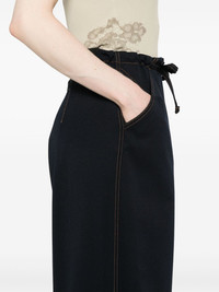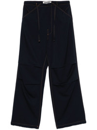 Daisy trousers Highlights - Midnight blue - Virgin wool blend - Twill weave - Front press-stud and zip fastening - Contrast stitching - Drawstring waist - Two diagonal pockets to the sides - Pleat detailing - Logo patch to the rear - Straight leg Made in Italy Composition Virgin Wool 98%, Elastane 2% SIZE & FIT Model measurements Height 5 ft 9 in(1.75 m) Bust/Chest 34.64 in(88 cm) Hips 36.61 in(93 cm) Waist 26.37 in(67 cm) FittingInformation Designed for a straight-leg fit, these trousers allow for a close fit at the waist and an unrestricted, comfortable fit over the leg Adjust this piece’s waistband to your preference using the drawstring Made from a midweight stretch fabric, this piece offers elasticity and flexibility when worn