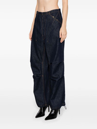 contrast-stitching cotton wide-leg jeans Highlights - Navy blue - Cotton - Washed denim - Contrast stitching - Concealed front fastening - Front tie fastening - Drawstring cuffs - Wide leg Made in Italy Composition Body: Cotton 100% Lining: Polyester 65%, Cotton 35% SIZE & FIT Model measurements Height 5 ft 10 in(1.78 m) Bust/Chest 30.31 in(77 cm) Hips 34.64 in(88 cm) Waist 24.01 in(61 cm) FittingInformation Designed with a wide leg cut, these jeans allow for a close fit at the waist and offer a loose and roomy fit over the leg Adjust this piece’s waistband to your preference using the drawstring Sturdy and hard-wearing, this denim piece offers no stretch This piece fits true to size – take your usual size Washing instructions Machine Wash