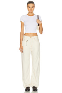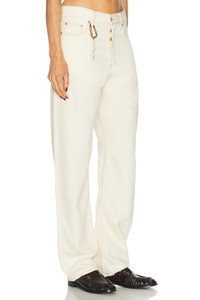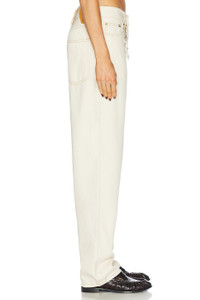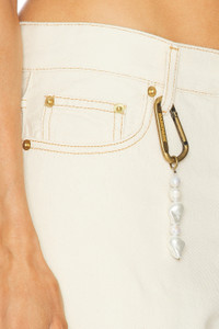 Details - Self: 67% cotton, 33% lyocell - Lining: 100% cotton - Made in Italy - Machine wash - Button fly - 5-pocket design - Split leather logo patch at back waist - Optional faux pearl keychain - Rigid denim fabric - Our Style No. DPAF-WJ24 - Manufacturer Style No. WTR53 TWB03 0009