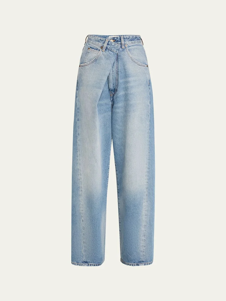 DARKPARK "Ines" jeans featuring a foldover waistband in faded light-wash denim Low-rise; sits at the hip Five-pocket style Oversized fit Full length Button/zip fly; belt loops Cotton Lining: Cotton/polyester Made in Italy Model is 5'10"/177cm. Online Inquiries: BGS21_T5Y9K| Store Inquiries: #4857511