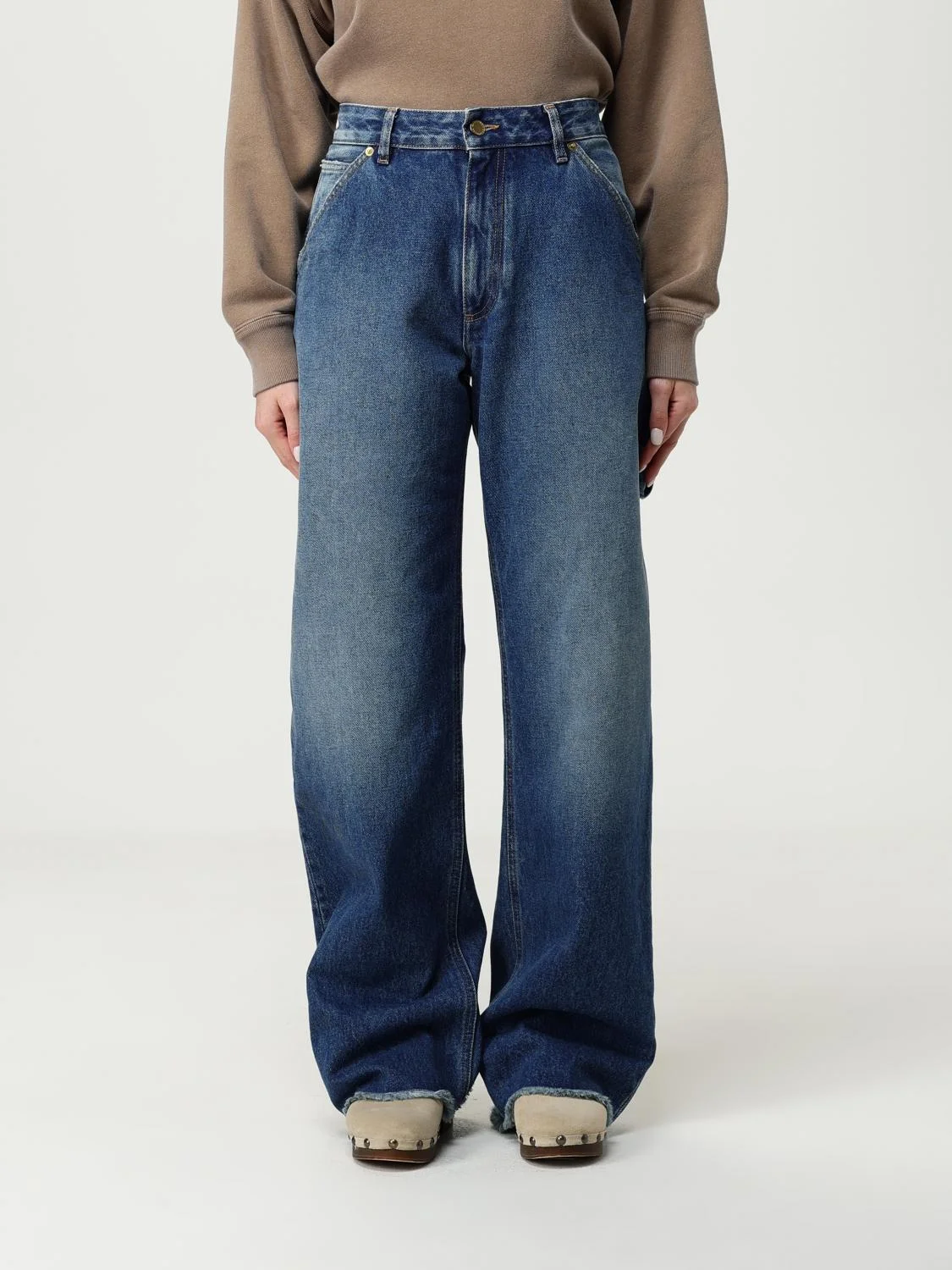 DESCRIPTION - Style: Urban-street - Pockets: 5-pocket - Waist: High waist - Bottom: With straight hemline - Closure: With button and zip - Materials: Cotton denim - Pattern: Plain-colored DETAILS AND CARE Composition not available SIZE AND FIT Sizes not available Size and fit Regular fit Designer code: WTR83DBL01W053 W053 Giglio Code: H23164 Designer: Darkpark Collection: Darkpark Woman Category: Clothing Darkpark