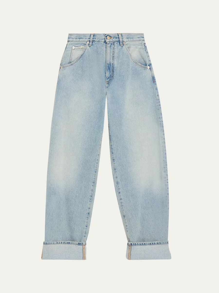 DARKPARK "Khris" barrelleg jeans crafted from rigid denim Lowrise; sits at the hip Fivepocket style Loose, relaxed fit Full length Button/zip fly; belt loops Cotton Machine wash cold Made in Italy