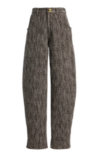 Founded in 2021 by Inna Gerchikov, DARKPARK is inspired by her desire to find bottoms that fit her personal style. Today, it’s the go-to destination for pants and denim embracing experimental washes, quirky treatments, and unconventional designs presented through roomy, wide-legged silhouettes. Cut from a herringbone-patterned cotton-wool blend, the 'Khris' pant has barrel legs that can be styled long over a heel or cuffed with flats. PRODUCT DETAILS - Resort '26 - Zip fastening - Composition: 58% cotton, 24% wool, 11% polyester, 6% polyamide, 1% other fibers; Lining: 100% viscose - Dry clean - Made in Italy SIZE & FIT - Our model is wearing a size 27 - Model is 5'9" with a 32" bust, 24" waist, and 35" hip