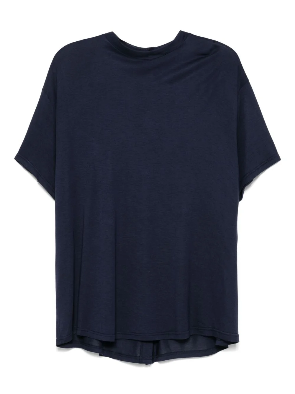 Linda cotton shirt Highlights - Navy blue - Front press-stud fastening - Crew neck - Short sleeves - Curved hem Made in Italy Composition Cotton 100%