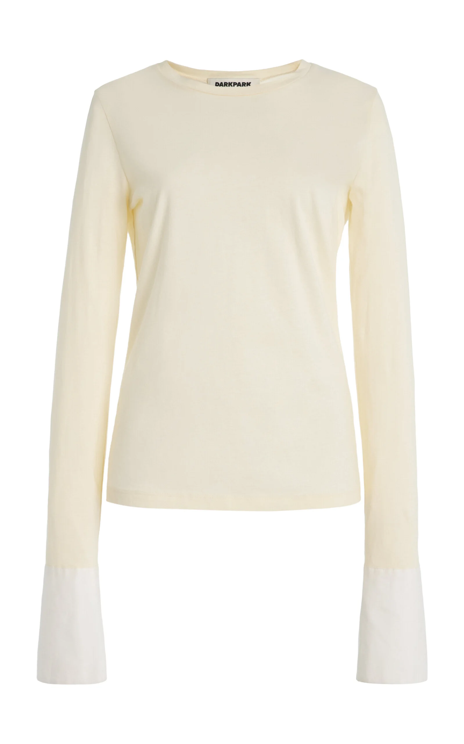 Founded in 2021 by Inna Gerchikov, DARKPARK is inspired by her desire to find bottoms that fit her personal style. Today, it’s the go-to destination for pants and denim embracing experimental washes, quirky treatments, and unconventional designs presented through roomy, wide-legged silhouettes. 'Nora' is a crewneck tee made from stretchy jersey with shirting cuffs. PRODUCT DETAILS - Fall '25 - Slip on - Composition: 100% cotton - Machine wash - Made in Italy SIZE & FIT - Our model is wearing a size Small - Model is 5'10" with a 30" bust, 24" waist, and 34" hip