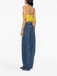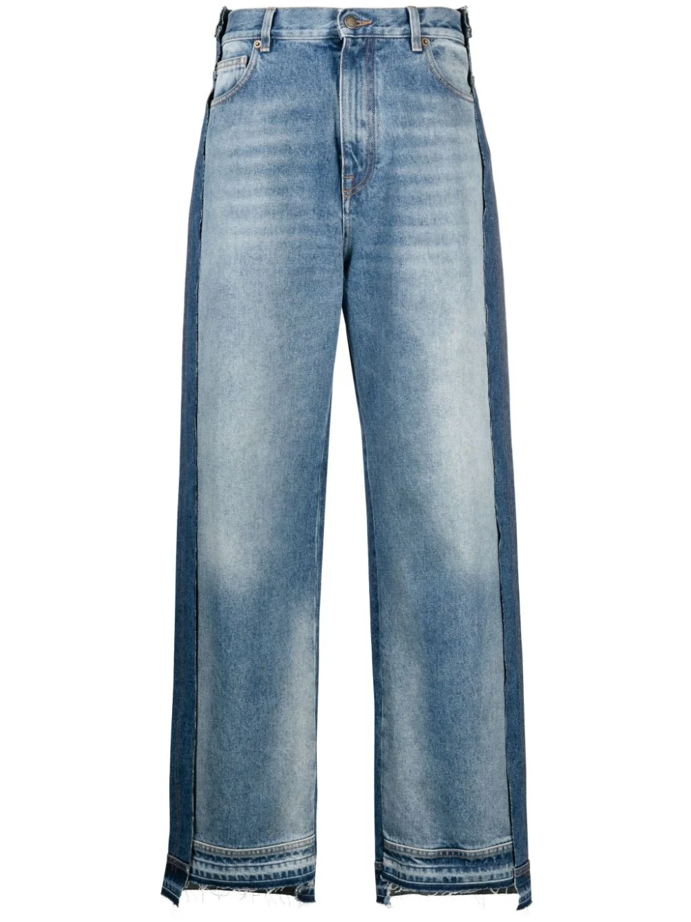 panelled wide-leg jeans Devoted to contemporary denim pieces, DARKPARK introduces these wide-leg jeans. Characterised by a two-tone panelled design, the pair features an asymmetric, raw-cut hem. Highlights - Blue - Denim - Panelled design - Belt loops - Concealed fly and button fastening - Classic five pockets - Wide leg - Long length - Asymmetric hem - Raw-cut hem Made in Italy Composition Lining: Polyester 65%, Cotton 35% Outer: Cotton 100% SIZE & FIT Model measurements Height 5 ft 10 in(1.78 m) Bust/Chest 31.49 in(80 cm) Hips 35.03 in(89 cm) Waist 23.62 in(60 cm) FittingInformation Designed with a wide leg cut, these jeans allow for a close fit at the waist and offer a loose and roomy fit over the leg Sturdy and hard-wearing, this denim piece offers no stretch This piece fits true to size – take your usual size