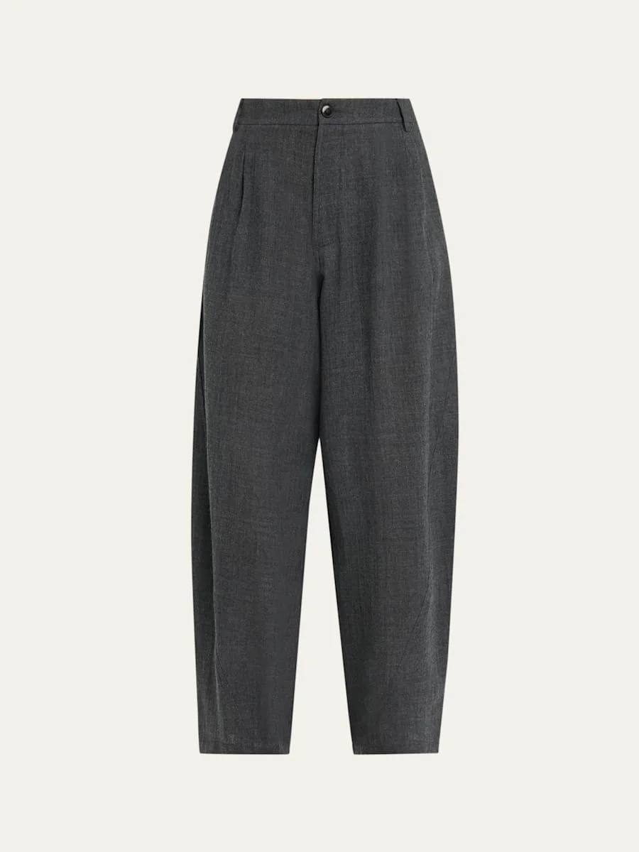 DARKPARK "Phebe" pants crafted from lightweight Japanese wool High rise Pleated front Side pockets; single back pocket Wide, tapered legs Full length Button/zip fly; belt loops Wool Dry clean Made in Italy