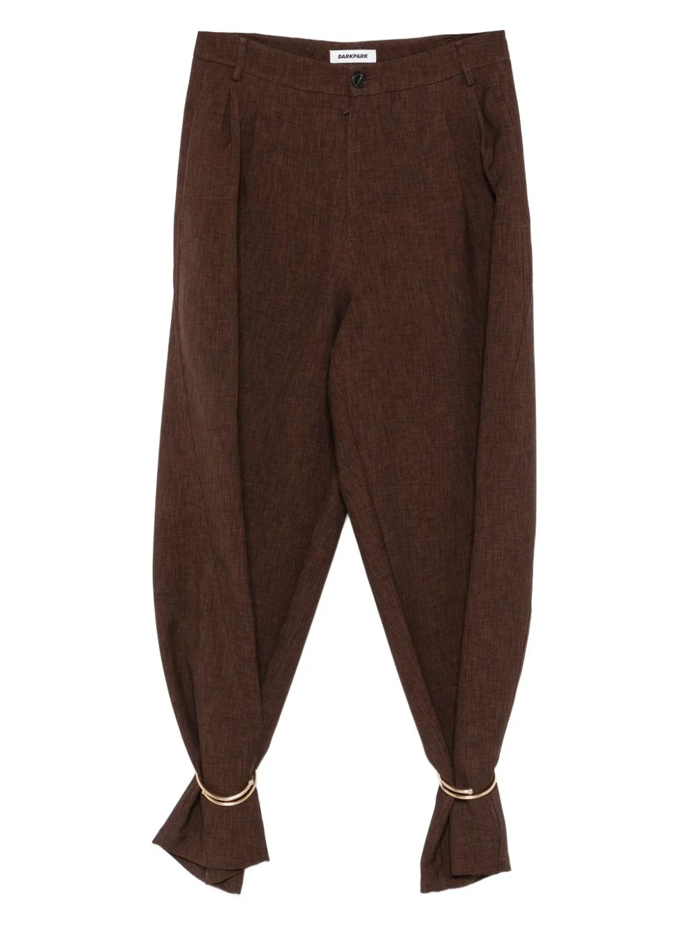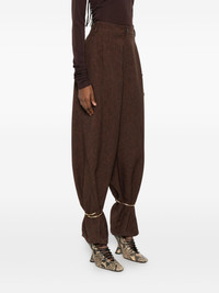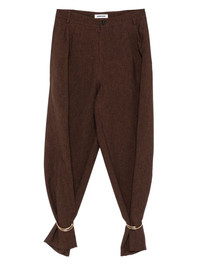 ring-cuff trousers Highlights - Brown - Gold-tone hardware - Ring detail at hem - Front button and zip fastening - Belt loops - Two side inset pockets Imported Composition Fabric 100% SIZE & FIT Model measurements Height 5 ft 8 in(1.73 m) Bust/Chest 29.92 in(76 cm) Hips 33.07 in(84 cm) Waist 23.22 in(59 cm) Washing instructions Read Manufacturer Guidelines