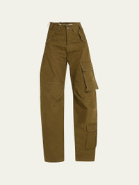 DARKPARK "Rosalind" wide-leg cargo pants featuring slight distressing throughout in cotton Flap and patch pockets High rise Tapered fit Full length Button/zip fly; belt loops Cotton Dry clean Made in Italy Model is 5'10"/177cm. Online Inquiries: BGS21_T3W5V| Store Inquiries: #4384419
