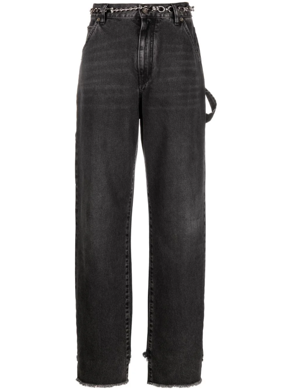 wide-leg carpenter jeans DARKPARK draws from utility to create these jeans, which are crafted from faded-black denim to a wide-leg silhouette with raw-cut hems. The hammer loop at one leg nods to their workwear inspirations. Highlights - Raw-hem carpenter jeans from darkpark featuring black, cotton, concealed fly and button fastening, belt loops, classic five pockets, distressed effect, wide leg, raw-cut hem and hammer loop. Made in Italy Composition Outer: Cotton 100% Lining: Polyester 65%, Cotton 35% SIZE & FIT Model measurements Height 5 ft 10 in(1.77 m) Bust/Chest 32.28 in(82 cm) Hips 35.03 in(89 cm) Waist 25.19 in(64 cm) FittingInformation Designed with a wide leg cut, these jeans allow for a close fit at the waist and offer a loose and roomy fit over the leg Constructed from stretch denim, this piece offers a stretch fit with durability This piece fits true to size – take your usual size Washing instructions Machine Wash