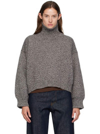 Knit superfine lambswool turtleneck. · Fully fashioned construction · Marling throughout · Rib-knit collar, hem, and cuffs · Cropped hem · Dropped shoulders Supplier color: Dark brown marle 100% superfine lambswool. Made in United Kingdom 252255F099001