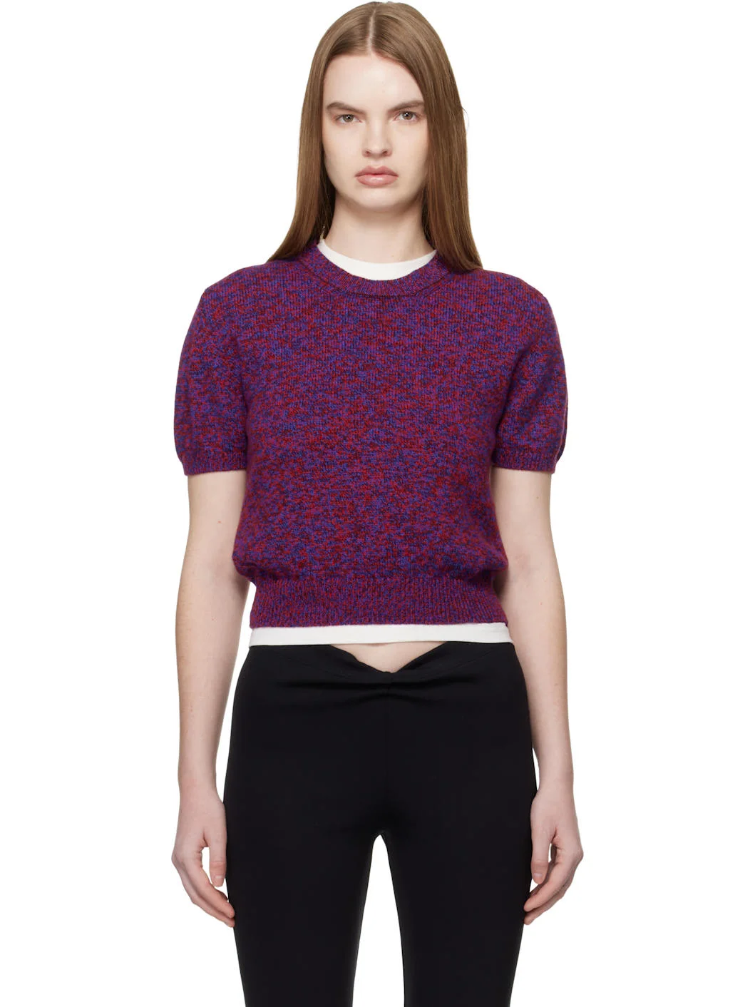Knit RWS-certified superfine lambswool T-shirt. · Fully fashioned construction · Hand-finished · Marling throughout · Rib-knit crewneck, hem, and cuffs Supplier color: Poppy/Port/Klein Mouline 100% superfine lambswool. Made in United Kingdom 261255F110000