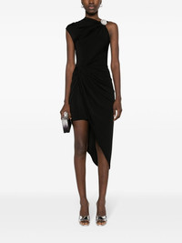 satin draped midi dress Highlights - Black - Satin finish - Draped design - Ruched detailing - Applique detail - Cowl neck - Rear zip fastening - Sleeveless - Asymmetric hem Made in United Kingdom Composition Outer: Acetate 95%, Elastane 5% glass 100% SIZE & FIT Model measurements Height 5 ft 11 in(1.8 m) Bust/Chest 32.67 in(83 cm) Hips 36.22 in(92 cm) Waist 24.4 in(62 cm) Measurement LENGTH 48.81 in(124 cm) WAIST 29.92 in(76 cm) BUST 31.49 in(80 cm) FittingInformation Designed for a slim fit that sits just away from the body offering a close yet comfortable fit Made from a midweight stretch fabric, this piece offers elasticity and flexibility when worn This piece fits true to size – take your usual size Washing instructions Specialist Cleaning