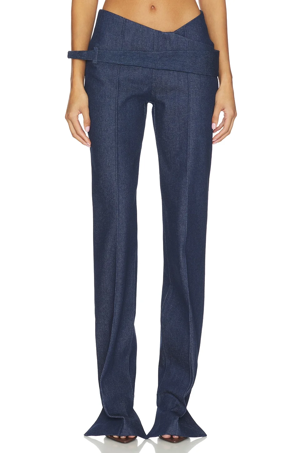 - Self: 100% cotton Contrast Fabric: 100% glass - Dry clean only - Hidden back zip closure - Front strap accent - Back faux welt pockets - Heavyweight denim fabric - Item not sold as a set.18" at the leg opening - Revolve Style No. DAVF-WP62 - Manufacturer Style No. PF25DK14DTR