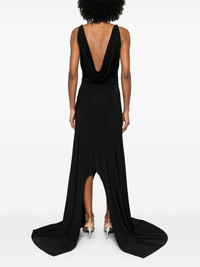 crystal-embellished gown Highlights - Black - Concealed side zip fastening - Double train - Cowl neck - Sleeveless Made in United Kingdom Composition Viscose 100%, glass 100% SIZE & FIT Model measurements Height 5 ft 11 in(1.8 m) Bust/Chest 32.67 in(83 cm) Hips 35.82 in(91 cm) Waist 25.98 in(66 cm) FittingInformation Designed for a close fit throughout Made from a midweight non-stretch fabric, this piece offers minimal elasticity when worn