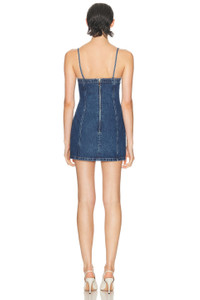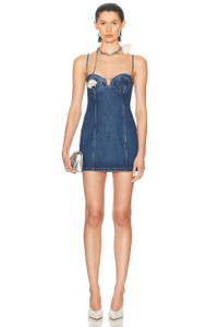 Details - 100% cotton - Dry clean only - Unlined - Hidden back zipper closure - Bustier design with rhinestone embellishment at bust - Denim fabric - Made in Turkey - Our Style No. DAVF-WD434 - Manufacturer Style No. SS25DK56DD