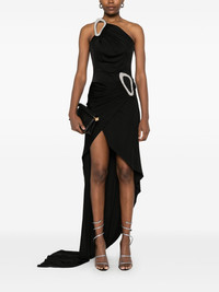 crystal-buckle asymmetric gown Highlights - Black - Concealed side zip fastening - Front slit - Cut-out detailing - Ruched detailing Made in United Kingdom Composition Viscose 100% SIZE & FIT Model measurements Height 5 ft 11 in(1.8 m) Bust/Chest 31.49 in(80 cm) Hips 36.61 in(93 cm) Waist 24.4 in(62 cm) Measurement HIPS 28.34 in(72 cm) LENGTH 74.8 in(190 cm) WAIST 21.25 in(54 cm) FittingInformation Designed for a slim fit that sits just away from the body offering a close yet comfortable fit Particularly long in length; consider your own measurements Made from a midweight non-stretch fabric