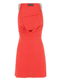 cowl-neck mini dress Highlights - Bright orange - Draped neckline - Embellished shoulder details - Fitted silhouette - Soft fabric draping - Sculptural shape Imported Composition Polyester 100%