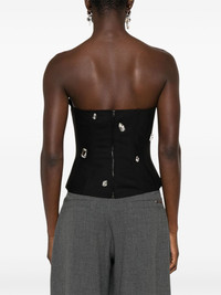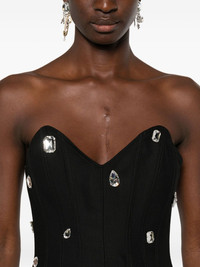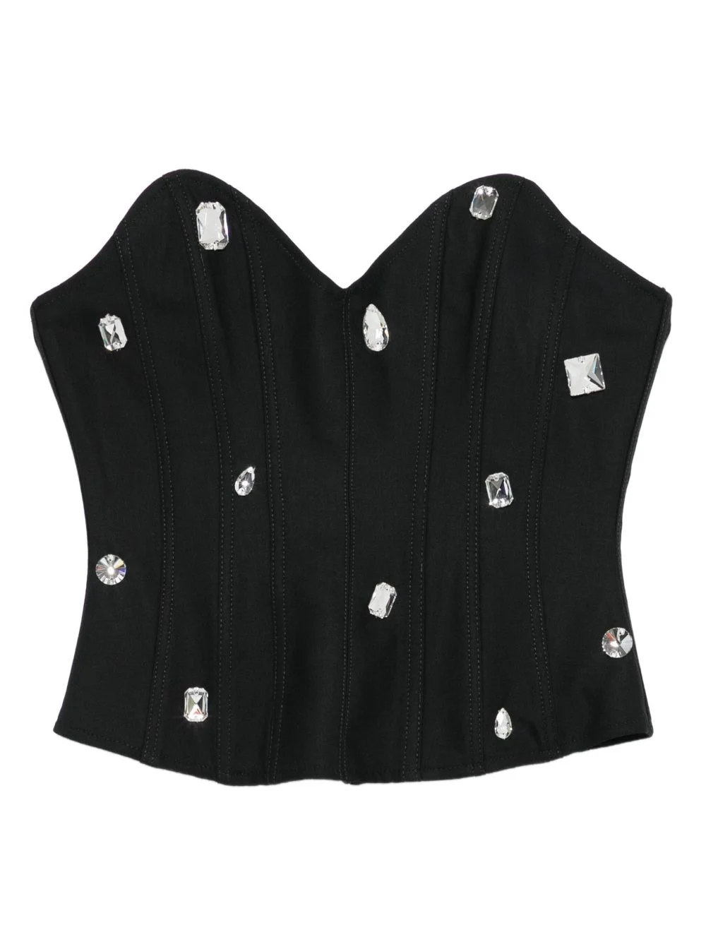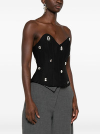 crystal-embellished corset top Highlights - Black - Sweetheart neckline - Crystal embellishments - Strapless Made in United Kingdom Composition Lining: Viscose 64%, Polyester 36% Outer: Wool 97%, Spandex/Elastane 3% SIZE & FIT Model measurements Height 5 ft 10 in(1.77 m) Bust/Chest 32.28 in(82 cm) Hips 35.03 in(89 cm) Waist 25.19 in(64 cm) Washing instructions Dry Clean Only