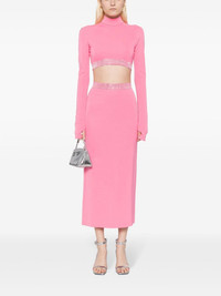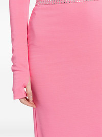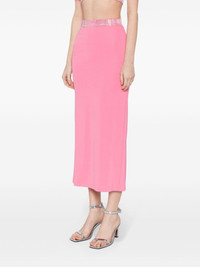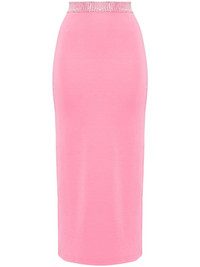 crystal-embellished midi skirt Highlights - Pink - Stretch-design - High-waisted - Crystal embellishment - Rear slit - Calf-length - Straight hem Made in United Kingdom Composition Viscose 98%, Elastane 2% Coating: Glass Fiber 100% SIZE & FIT Model measurements Height 5 ft 9 in(1.76 m) Bust/Chest 31.1 in(79 cm) Hips 35.03 in(89 cm) Waist 24.4 in(62 cm) FittingInformation This midi-length skirt is intended to be worn just below the waist The elasticated waist allows for a comfortable fit Made from a midweight stretch fabric, this piece offers elasticity and flexibility when worn This piece fits true to size – take your usual size Washing instructions Dry Clean Only