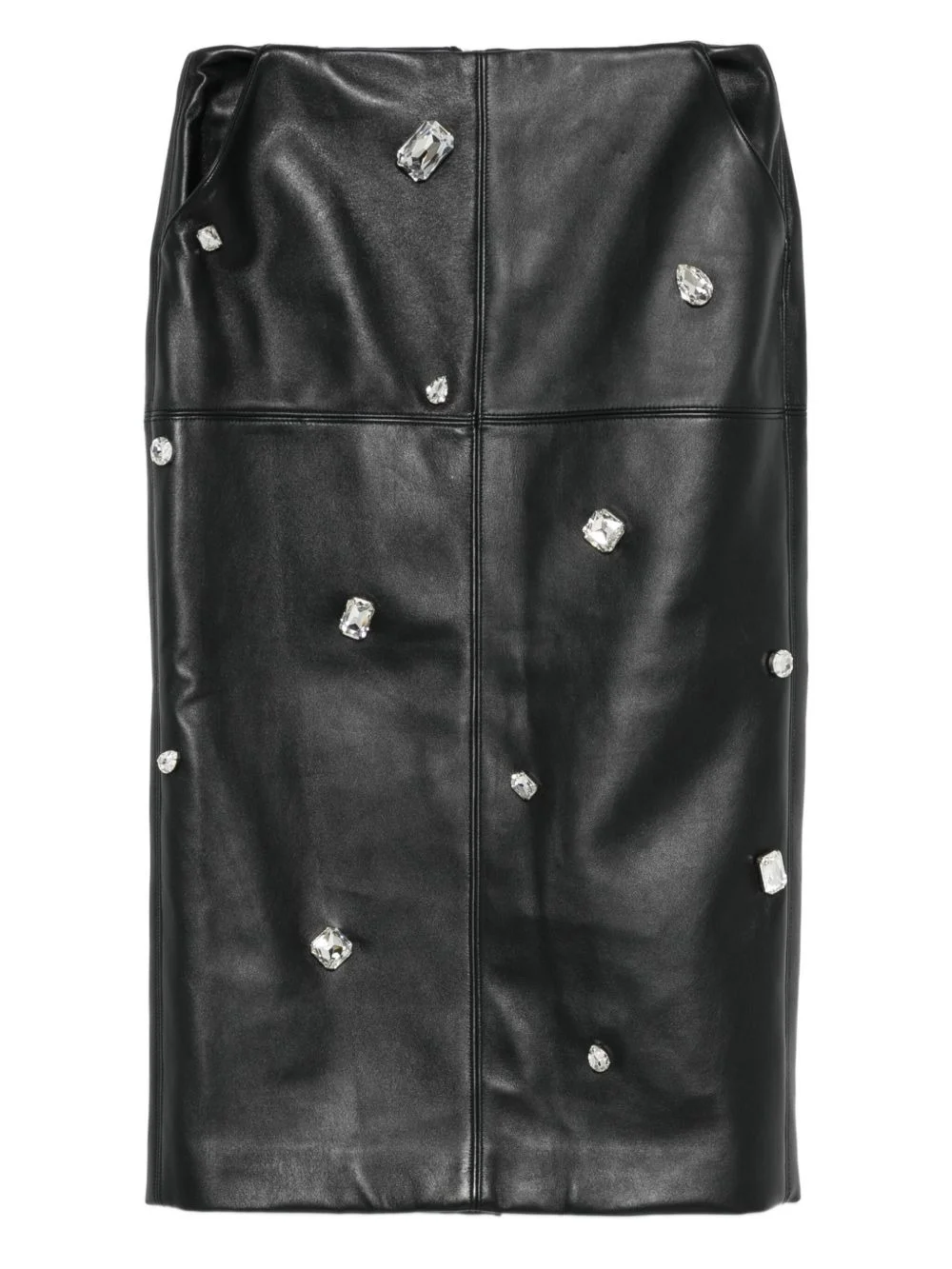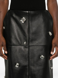 crystal-embellished skirt Highlights - Black - Crystal embellishments - Midi length Made in United Kingdom Composition Outer: Calf Leather 100% Lining: Viscose 64%, Polyester 36% SIZE & FIT Model measurements Height 5 ft 10 in(1.77 m) Bust/Chest 32.28 in(82 cm) Hips 35.03 in(89 cm) Waist 25.19 in(64 cm) Washing instructions Specialist Cleaning