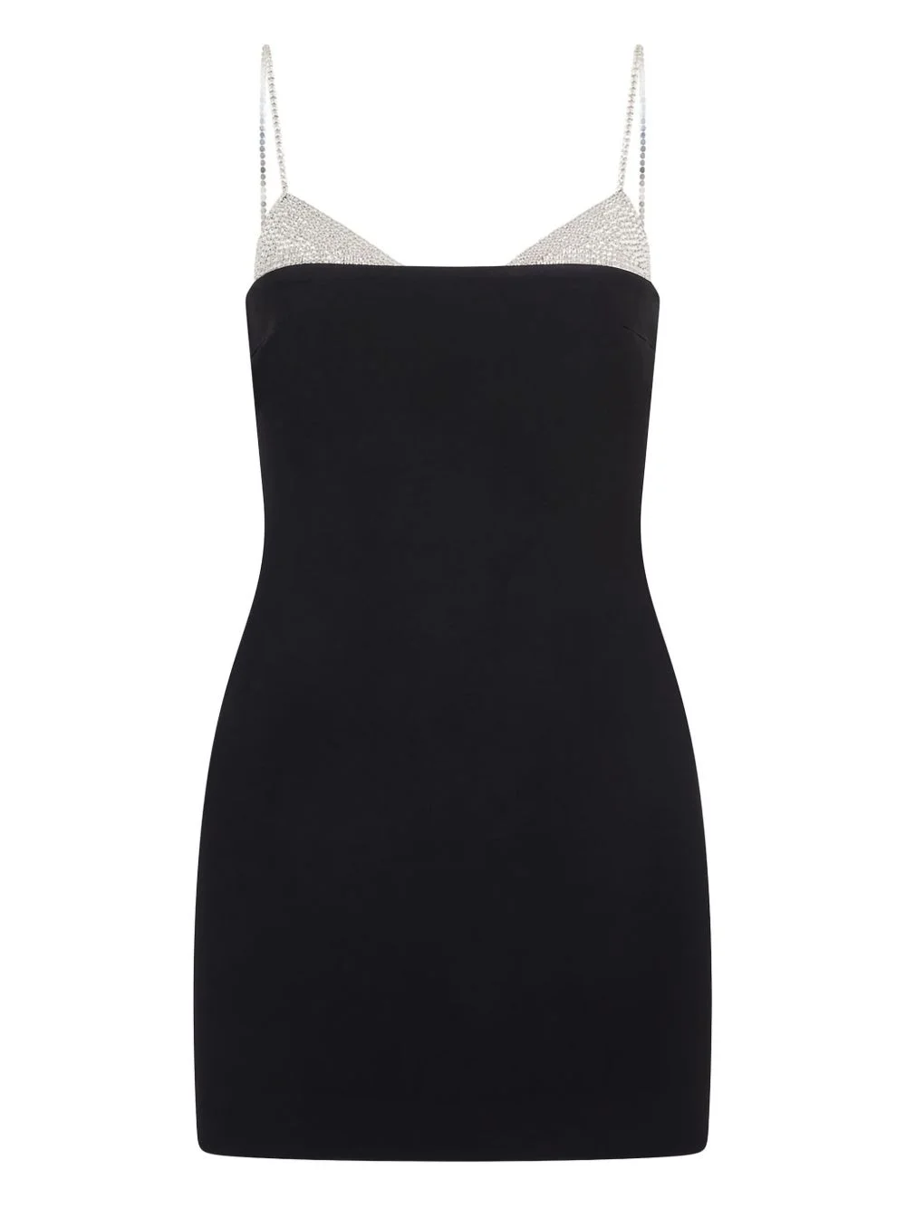 crystal-embellished mini dress Highlights - Black - Crystal-embellished straps - Straight neckline - Sleeveless Imported Composition Lining: Viscose 64%, Polyester 36% Outer: glass 100%, Viscose 50%, Acetate 47%, Elastane 3% Washing instructions Read Manufacturer Guidelines