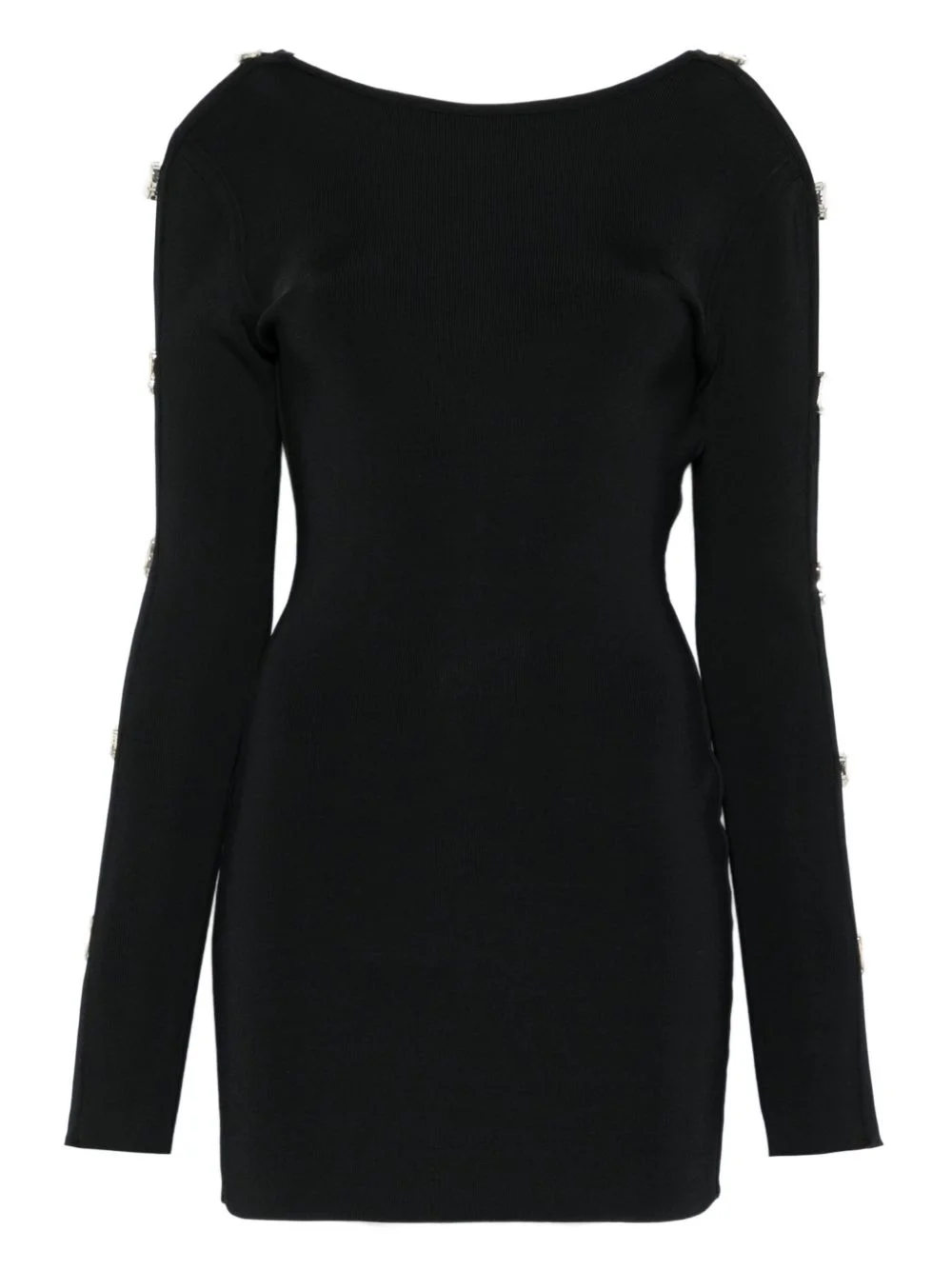 cut-out long-sleeve mini dress Highlights - Black - Long sleeves - Cut-out shoulder - Silver-tone embellishments - Close-fitting - Concealed zip fastening Imported Composition glass 100%, Rayon 75%, Nylon 23%, Spandex/Elastane 2% SIZE & FIT Model measurements Height 5 ft 9 in(1.74 m) Bust/Chest 34.64 in(88 cm) Hips 36.61 in(93 cm) Waist 26.37 in(67 cm) Washing instructions Dry Clean Only