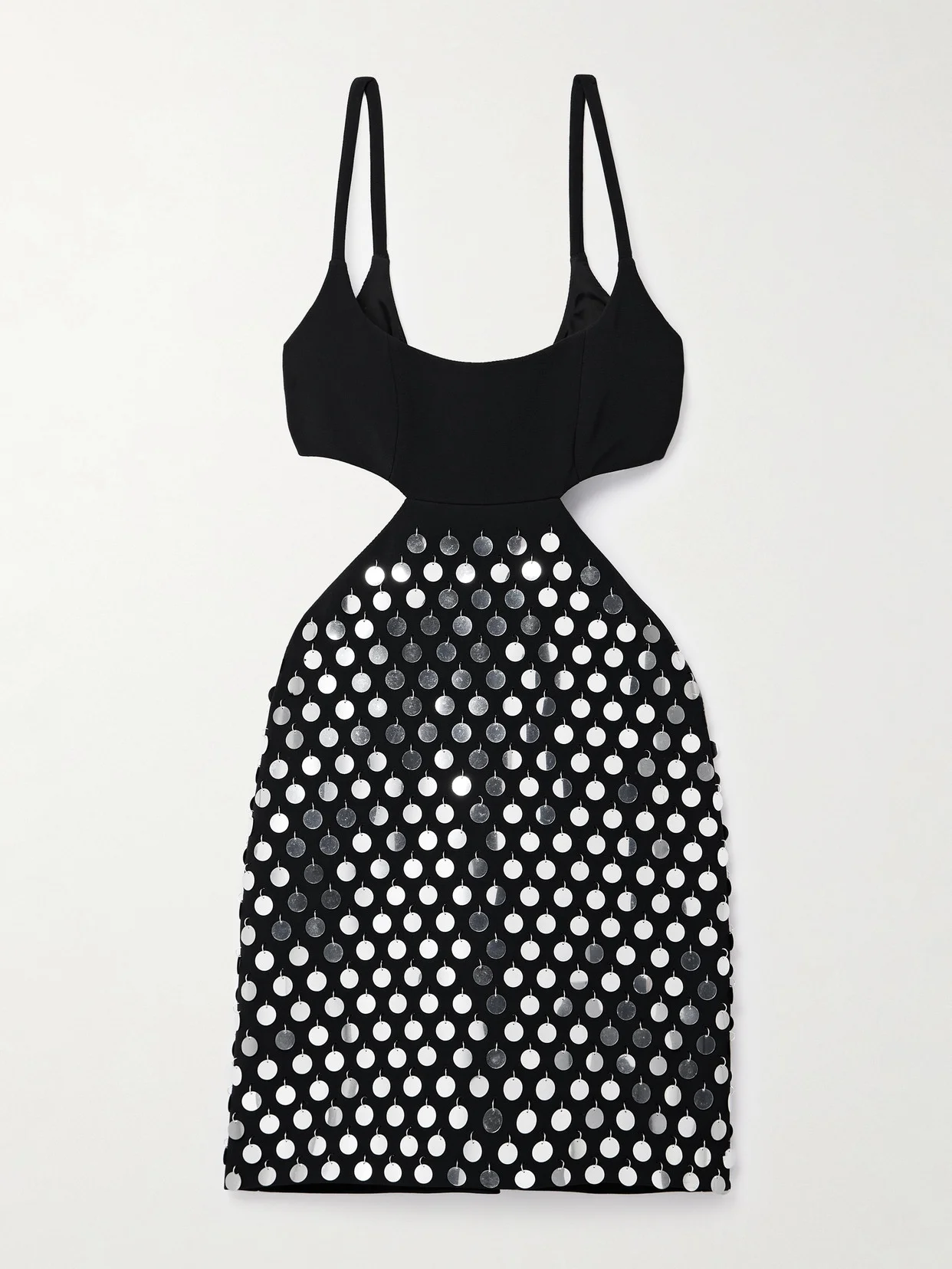 David Koma's mini dress is made from cady and decorated with mirrored paillettes. It has a scooped back and generous side cutouts - a key silhouette seen throughout the label's Spring '24 collection. Finish your outfit with silver accessories.