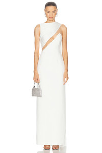 Details - Self: 50% viscose, 47% acetate, 3% elastane - Contrast Fabric: 95% acetate, 5% elastane - Lining: 97% polyester, 3% elastane - Made in United Kingdom - Dry clean only - Fully lined - Hidden side zipper closure - Crepe fabric with ruched jersey overlay and sheer mesh panel at bodice3 - Back vent - Our Style No. DAVF-WD390 - Manufacturer Style No. AW24DK27DL