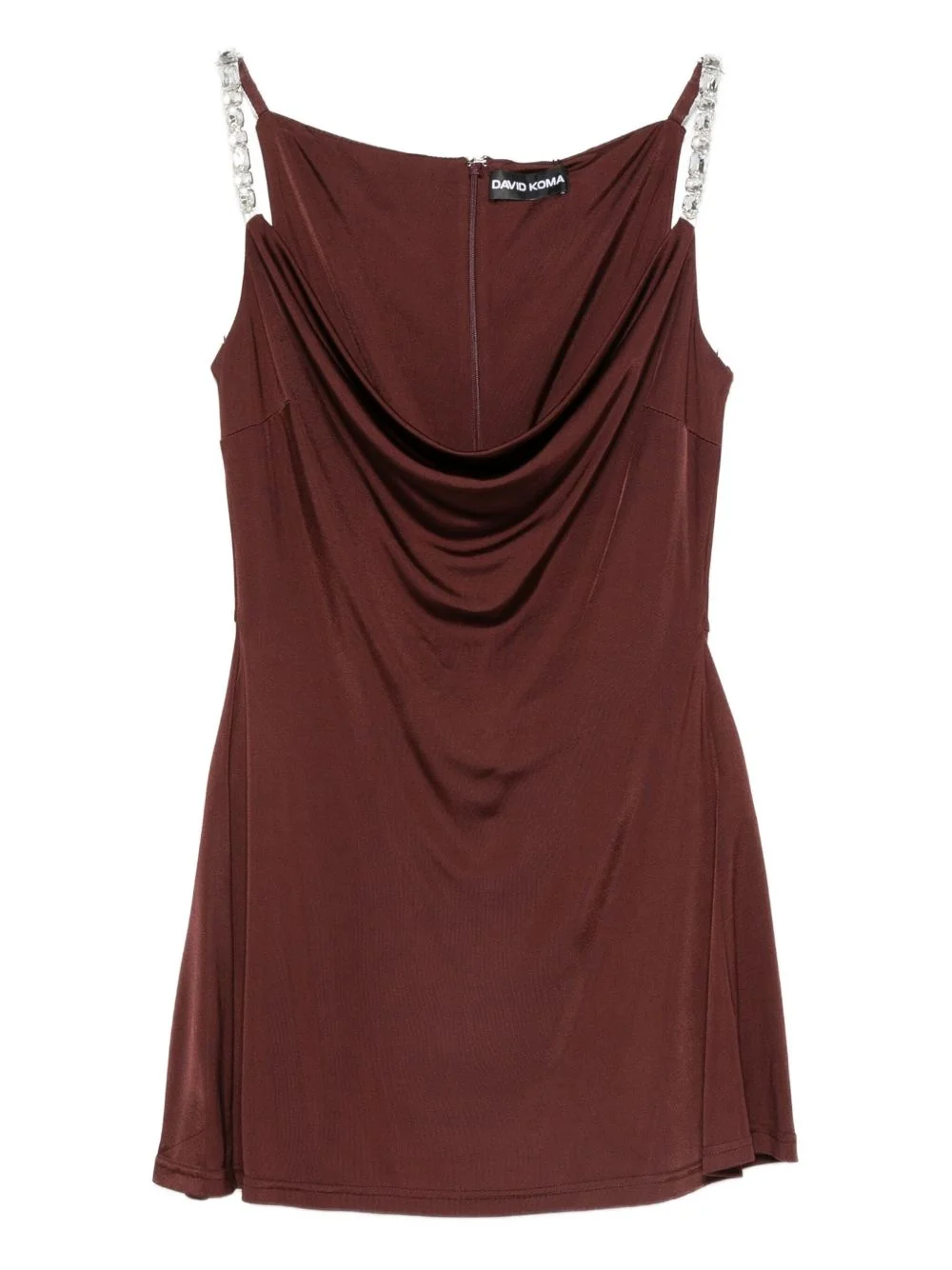 crystal-embellished mini dress Highlights - Brown - Crystal embellishment - Cowl neck - Sleeveless - Mini length Imported Composition Fabric 100% SIZE & FIT Model measurements Height 5 ft 8 in(1.73 m) Bust/Chest 29.92 in(76 cm) Hips 33.07 in(84 cm) Waist 23.22 in(59 cm) Washing instructions Read Manufacturer Guidelines