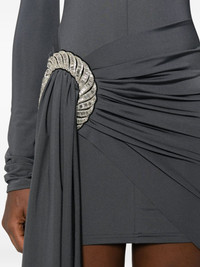 embellished draped dress Highlights - Grey - Embellished detail - Draped detail - Long sleeves - High neck - Asymmetric hem Made in United Kingdom Composition Nylon 80%, Elastane 20% SIZE & FIT Model measurements Height 5 ft 10 in(1.78 m) Bust/Chest 31.49 in(80 cm) Hips 37 in(94 cm) Waist 23.62 in(60 cm) Washing instructions Dry Clean Only