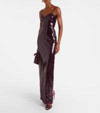 David Koma's glamorous styles are the key to making an entrance when it matters the most. A prime example, this gown is embellished at the neckline and waist, gathering the fabric into a flattering silhouette. Product Details - Material: 90% polyester, 10% polyamide - Care instructions: dry clean - Made in the UK - Designer color name: Burgundy - Item color: burgundy - Lining: 64% viscose, 36% polyester - Trim: 100% leather - Closure: zipped back - Underwired cups - Long vent - Fully lined - Item number: P01051667 Size & Fit - True to size - Low back - Fitted - Non-stretchy fabric - The model seen in the picture is 178cm-5'10" and wearing a size UK 8