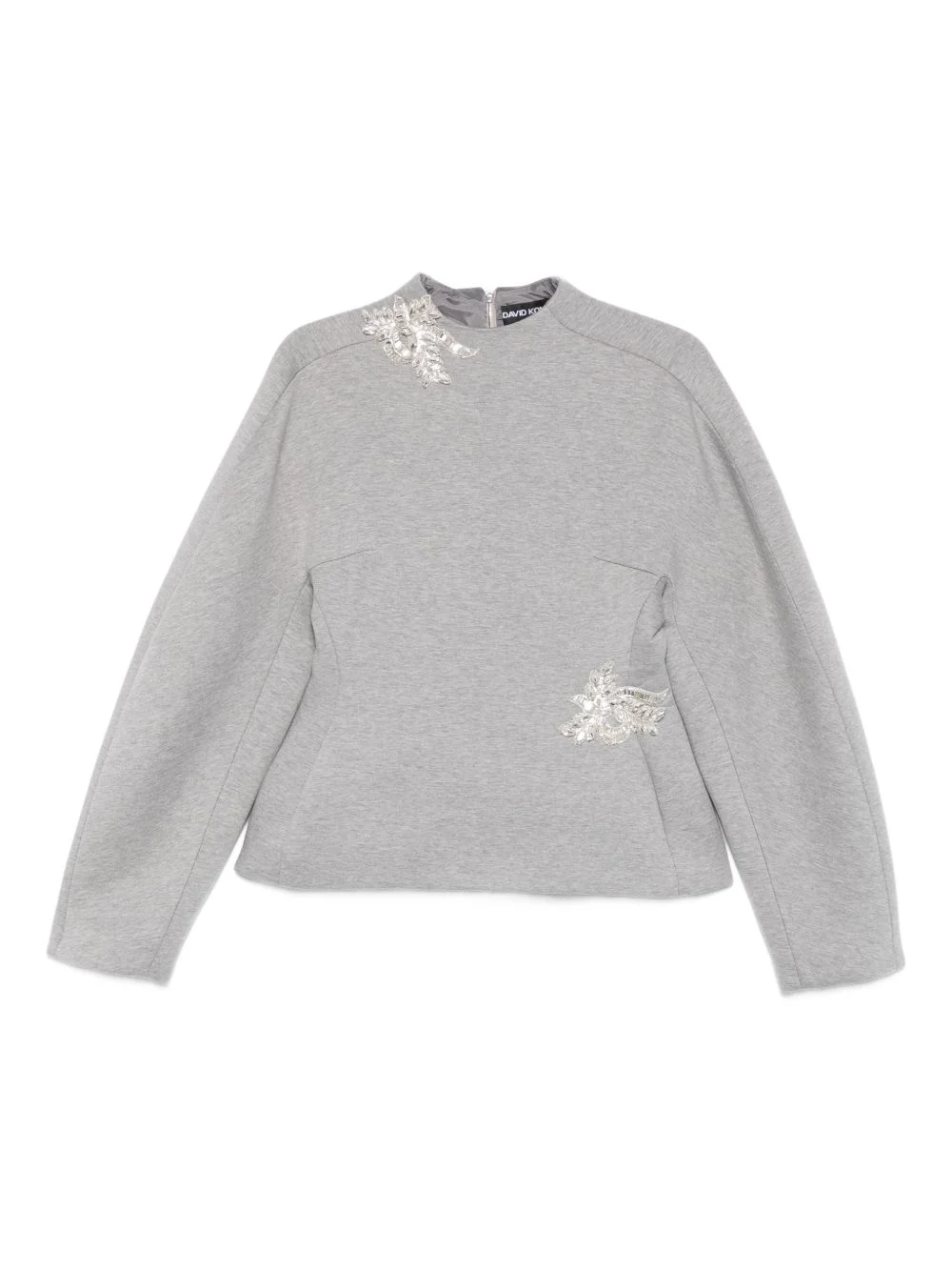 embellished peplum top Highlights - Grey - Embellishment - Round neck - Long sleeves - Peplum hem Made in United Kingdom Composition Outer: glass 100%, Cotton 82%, Nylon 18% Lining: Acetate 96%, Lyocell 4% Washing instructions Dry Clean Only