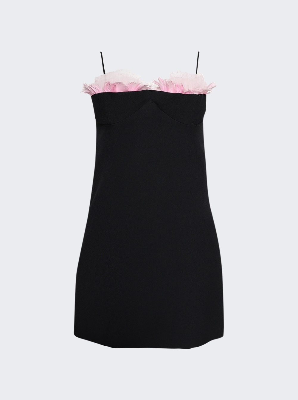 Details - Fitted silhouette - Mini length - Spaghetti straps - Balconette bra design with pink tulle ruffle and feathers - Hidden zip closure at the back - Care according to label - Material: - Viscose, 47% Acetate, 3% Elastane Size Information: Vendor Color Code: Brand Style: SS25DK26D Designer/Brand: DAVID KOMA