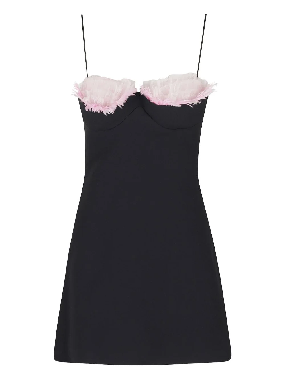 feather-trimmed sweetheart-neck dress Highlights - Black - Sweetheart neckline - Feather embellishment - Tulle detail - Thin straps - Concealed zip fastening Made in United Kingdom Composition Viscose 50%, Acetate 47%, Elastane 3%