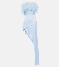 Product Details - Material: 78% triacetate, 22% polyester - Care instructions: specialist clean - Made in the UK - Designer color name: Blue - Closure: zip and hook fastening - Trim: 100% ostrich feathers - Item number: P01004266 Size & Fit - True to size - Cinched waist - Non-stretchy fabric - The model seen in the picture is 178cm-5'10" and wearing a size UK 8