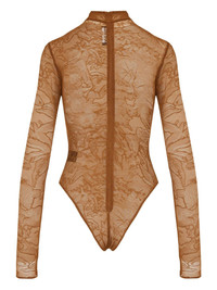 floral-lace bodysuit Highlights - Brown - Floral lace - High neck - Long sleeves - Zip fastening Imported Composition Nylon 92%, Elastane 8% Washing instructions Read Manufacturer Guidelines
