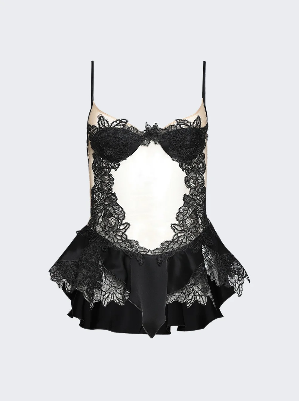 Lace Peplum Detail Lingerie Top Black