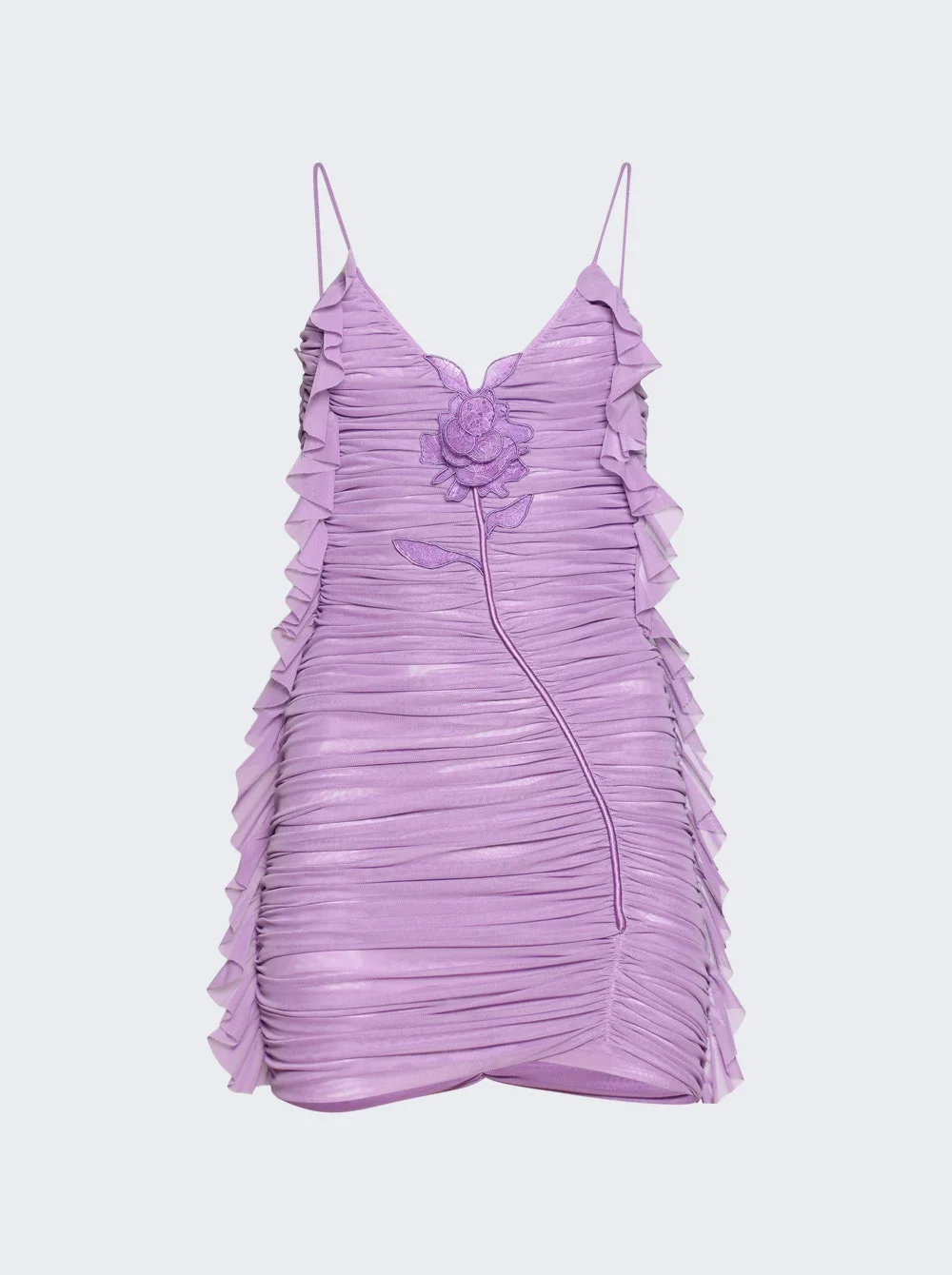 Lace Rose Embroired Detail Asymmetric Ruched Dress Lilac
