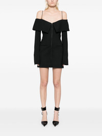 layered-shoulder tailored mini dress Highlights - Black - Stretch-wool - Tailored design - Layered details - Front zip fastening - Spaghetti straps - Off-shoulder - V-neck - Folded edge - Long sleeves - Fitted waistline - Thigh-length - Straight hem Made in United Kingdom Composition Outer: Wool 97%, Elastane 3% Lining: Viscose 64%, Polyester 36% SIZE & FIT Model measurements Height 5 ft 9 in(1.76 m) Bust/Chest 31.1 in(79 cm) Hips 35.03 in(89 cm) Waist 24.4 in(62 cm) FittingInformation Designed for a slim fit that sits just away from the body offering a close yet comfortable fit Slightly short in length; consider your own measurements Made from a midweight stretch fabric, this piece offers elasticity and flexibility when worn