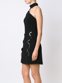 metallic detailing halterneck dress Black wool blend metallic detailing halterneck dress from David Koma. Made in United Kingdom Composition Lining: Acrylic 96%, Lyocell 4% Wool 93%, Polyamide 5%, Spandex/Elastane 2% SIZE & FIT Model measurements Height 5 ft 10 in(1.77 m) Bust/Chest 33.85 in(86 cm) Hips 35.03 in(89 cm) Waist 24.01 in(61 cm) Washing instructions Dry Clean Only