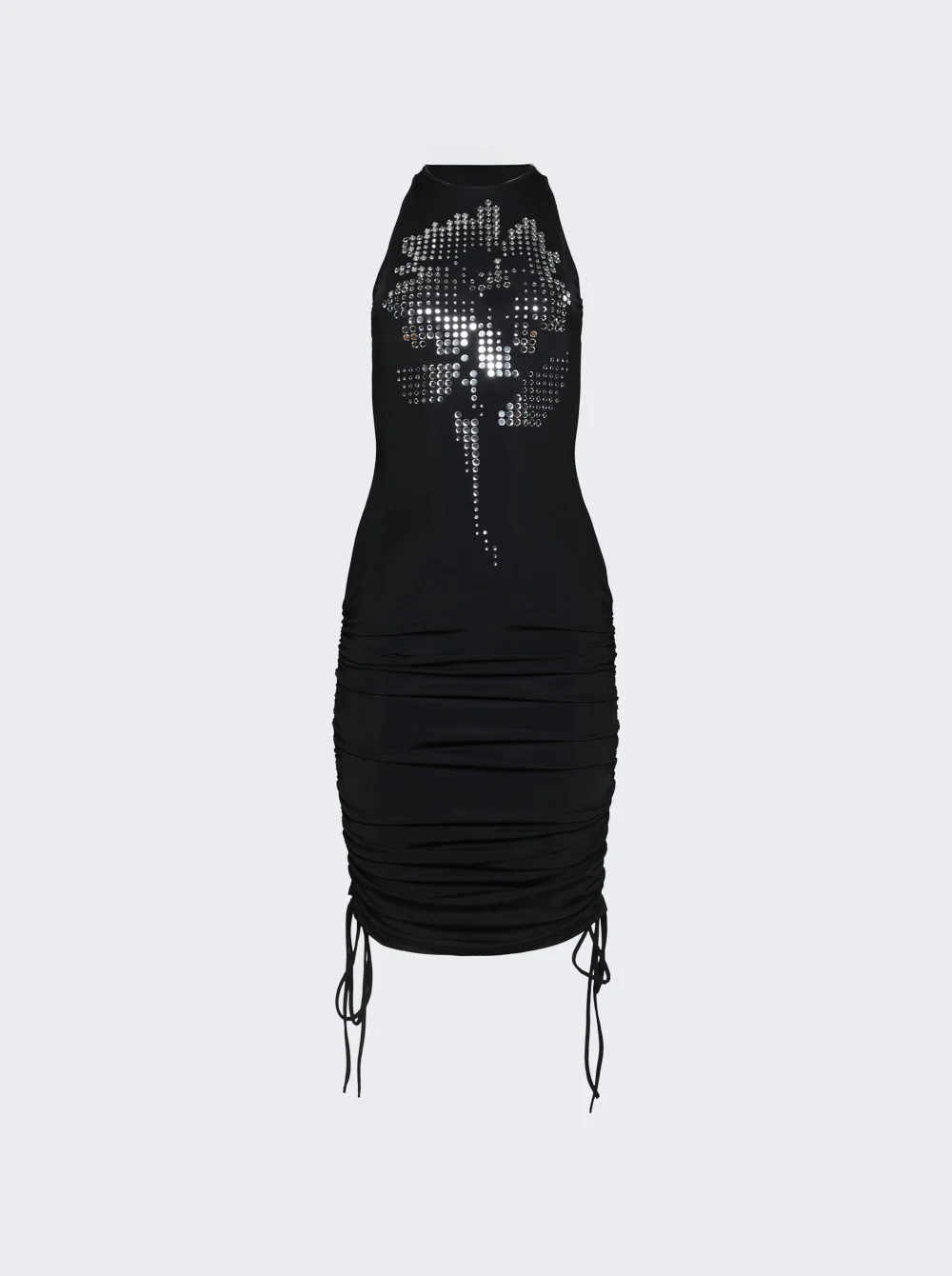 Mirrored Flower Hotfix Ruched Mini Dress Black And Silver
