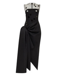 polka-dot draped dress Highlights - Black - Sheer panelling - Polka dot pattern - Crew neck - Draped skirt - Concealed back zip fastening - Asymmetric hem Made in United Kingdom Composition Nylon 100% Washing instructions Read Manufacturer Guidelines