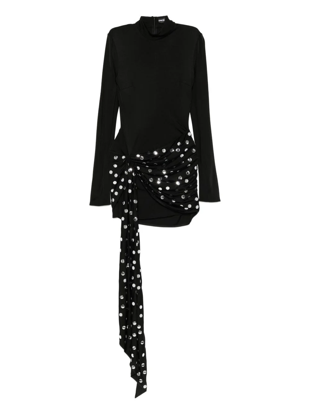 knot embellished dress Highlights - Black - Silver embellishment - Long sleeves - Knot detail - Draped detail - High neck Imported Composition Fabric 100% SIZE & FIT Model measurements Height 5 ft 9 in(1.76 m) Bust/Chest 31.88 in(81 cm) Hips 35.43 in(90 cm) Waist 24.8 in(63 cm) Washing instructions Read Manufacturer Guidelines