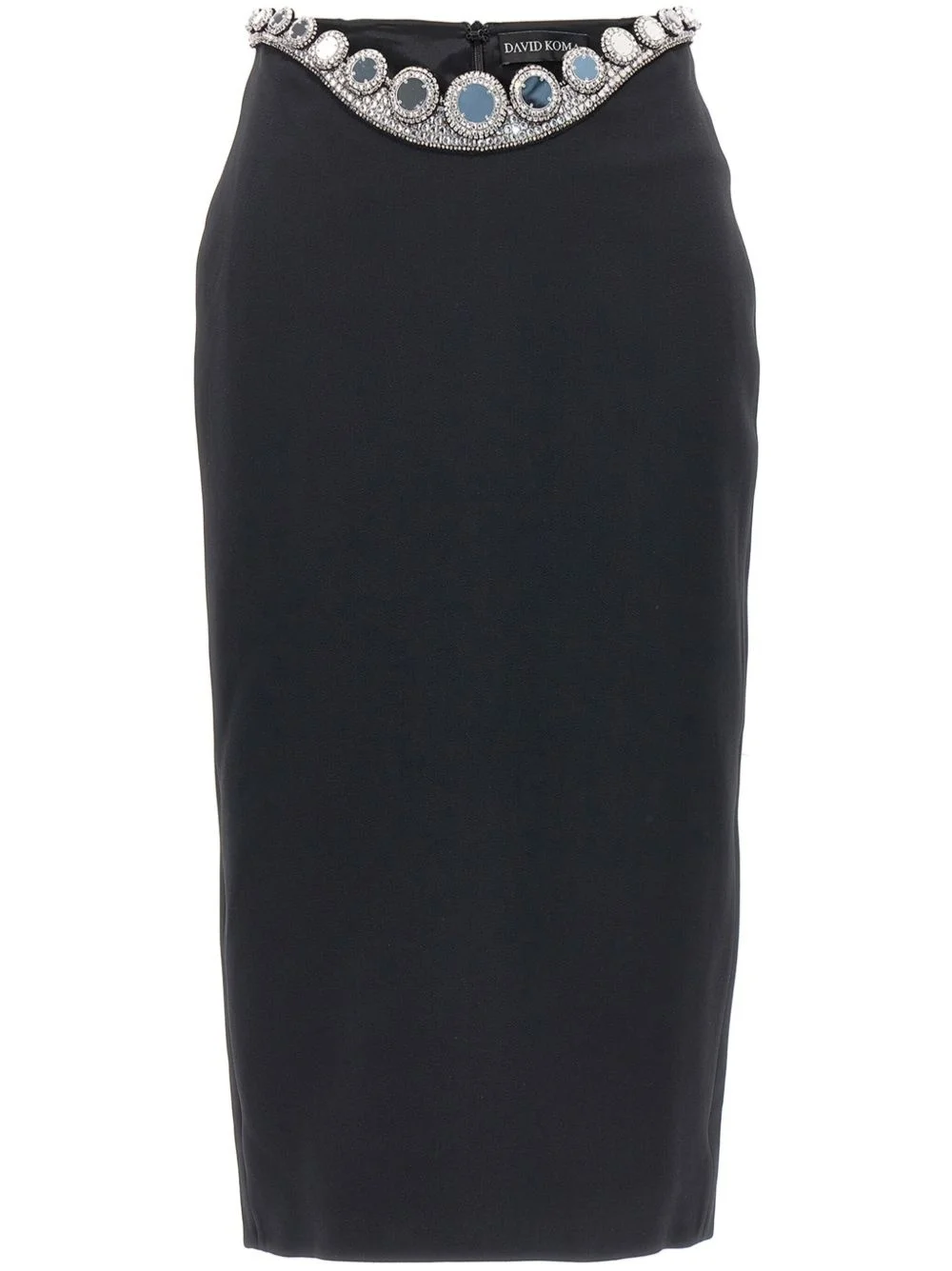 rhinestone-embellished pencil skirt Highlights - Black - Concealed rear zip fastening - High-waisted - Rear slit Imported Composition Acetate 52%, Viscose 45%, Elastane 3%
