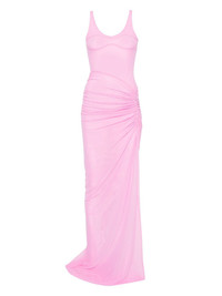 Ruched Mesh gown Highlights - Pink - Sleeveless - Ruched detailing - Side slit Made in United Kingdom Composition Polyamide 92%, Elastane 8% SIZE & FIT Model measurements Height 5 ft 11 in(1.8 m) Bust/Chest 31.49 in(80 cm) Hips 36.61 in(93 cm) Waist 24.4 in(62 cm) FittingInformation Designed for a slim fit that sits just away from the body offering a close yet comfortable fit Made from a midweight stretch fabric, this piece offers elasticity and flexibility when worn